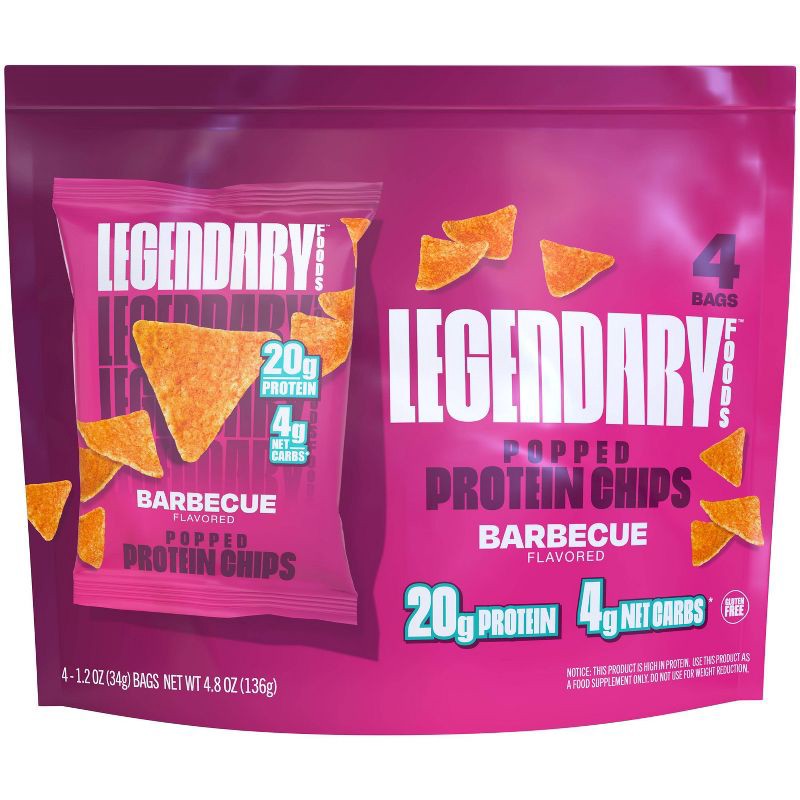 Legendary Foods Gluten Free and Keto Friendly Popped Protein Chips - BBQ - 4.8oz/4ct
