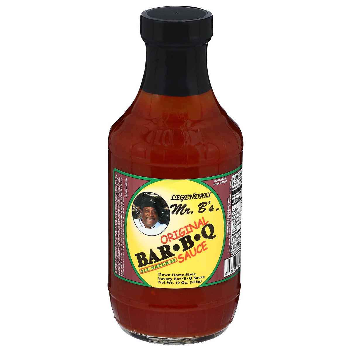Down home style savory barbq sauce. All natural. www.mrbsbarbecue.com. Product of USA.