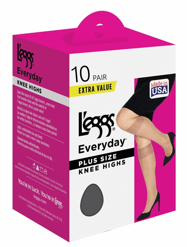 slide 1 of 1, Leggs Everyday Plus Size Knee High Sheer Toe Q00J99 Off Black One Size, 10 ct