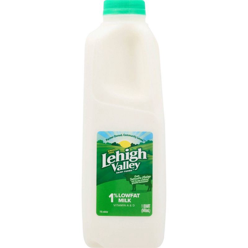 - One (1) lowfat milk quart milk bottle of Lehigh Valley 1% Milk with Vitamin A and D