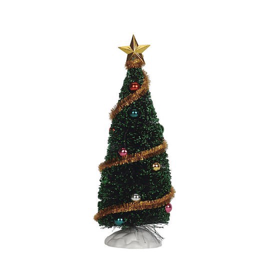 Buy this Lemax Sparkling Green Christmas Tree at Michaels. Perfectly sized fir tree is nicely shaped and decorated with bright lights and wrapped with golden garland. All topped by a large gold star t…