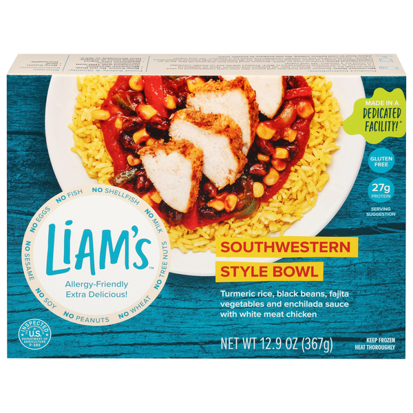 Turmeric rice, black beans, fajita vegetables and enchilada sauce with white meat chicken. Free of the top allergens but full of flavor!