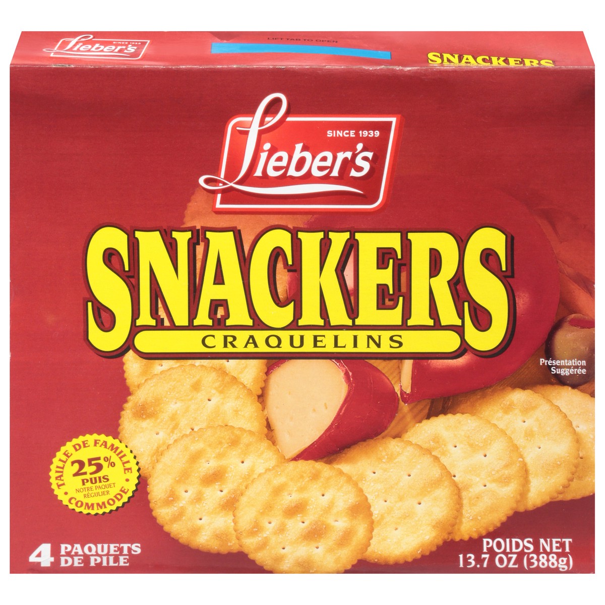 Since 1939. Convenient 25% more then lieber's regular pack family size. 4 reclosable stack packs.