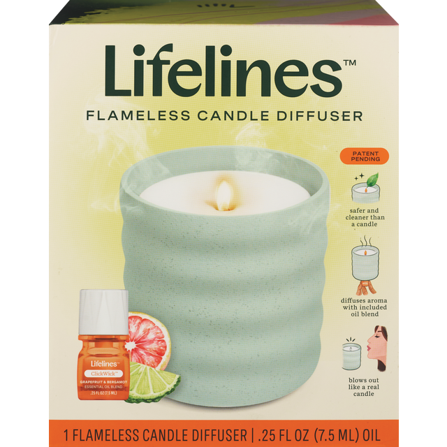 Lifelines Flameless Candle Diffuser & Essential Oil Blend, Bubble, Green