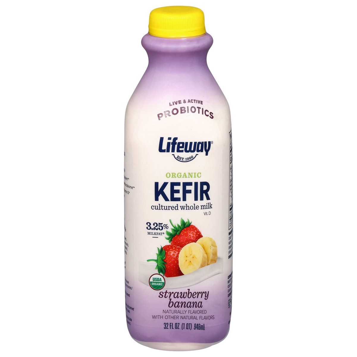 Live & active probiotics. Est. 1986. Vit. D. 3.25% milkfat (See nutrition information for saturated fat content). The Lifeway Kefir Story My family's American dream began when we immigrated to the Uni…