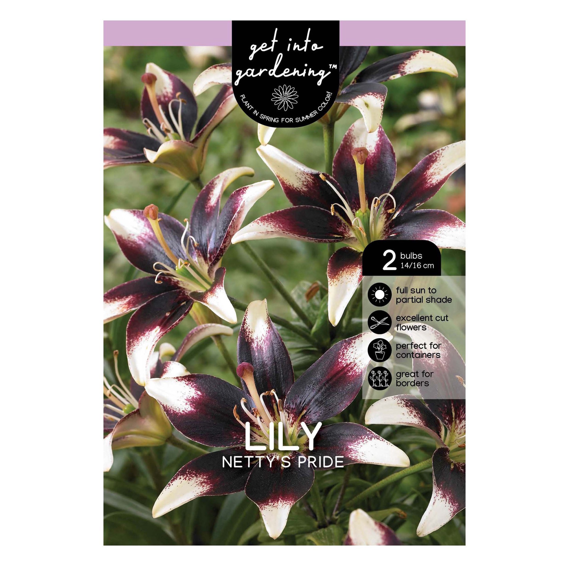 Lily BiColor Netty's Pride has gorgeous blooms of dark purple/maroon with creamy white tips. 2 bulbs included.