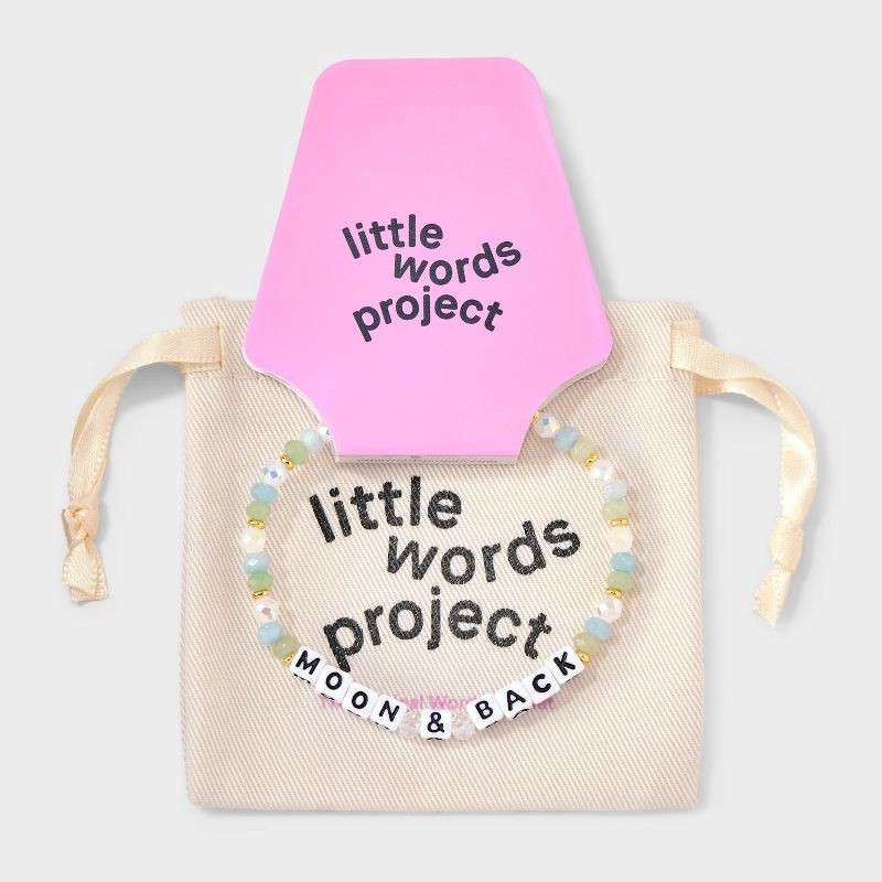"Take your wrist stack to the stars. With shimmering clean-slate beads and a celestial vibe, the “Moon & Back” bracelet is a sweet way to say infinite love and beyond.This Little Word™ is more than ju…