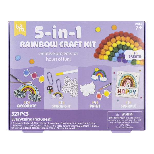 Receive 5 different rainbow-themed creative activities with a Little Yellow Bicycle 5-In-1 Rainbow Craft Kit. It includes all the necessary tools and instructions to complete activities and create col…