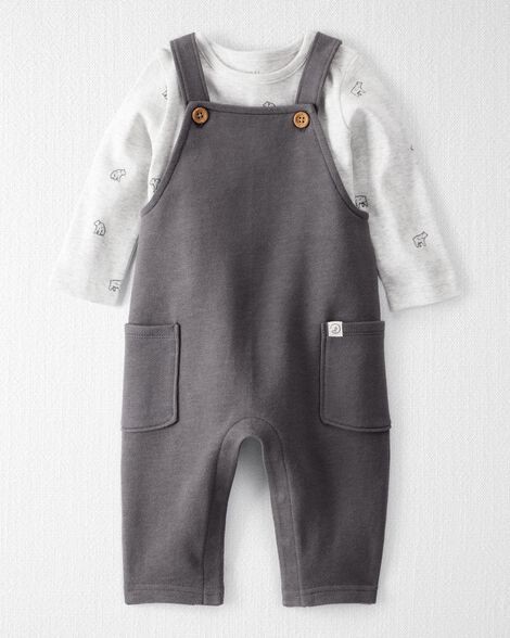 Littleplanet Baby 2-Piece Organic Cotton Overall Set in Bear Print Charcoal, Heather Grey 6M