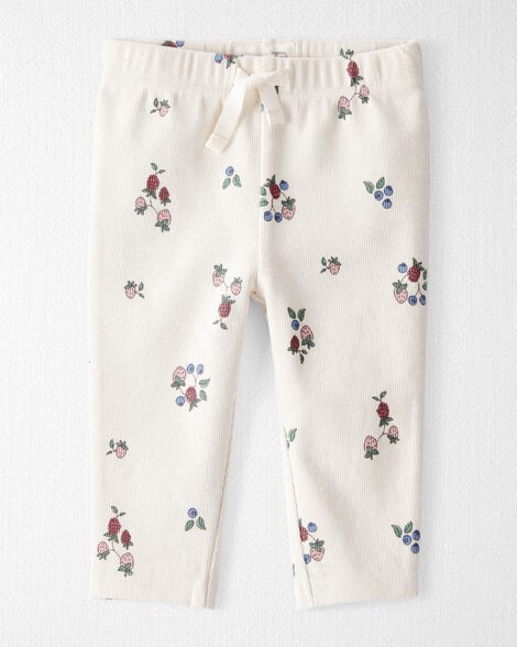 Littleplanet Baby Girl Organic Cotton Ribbed Knit Pants in Berry Blossom Print Berry Blossom 24M