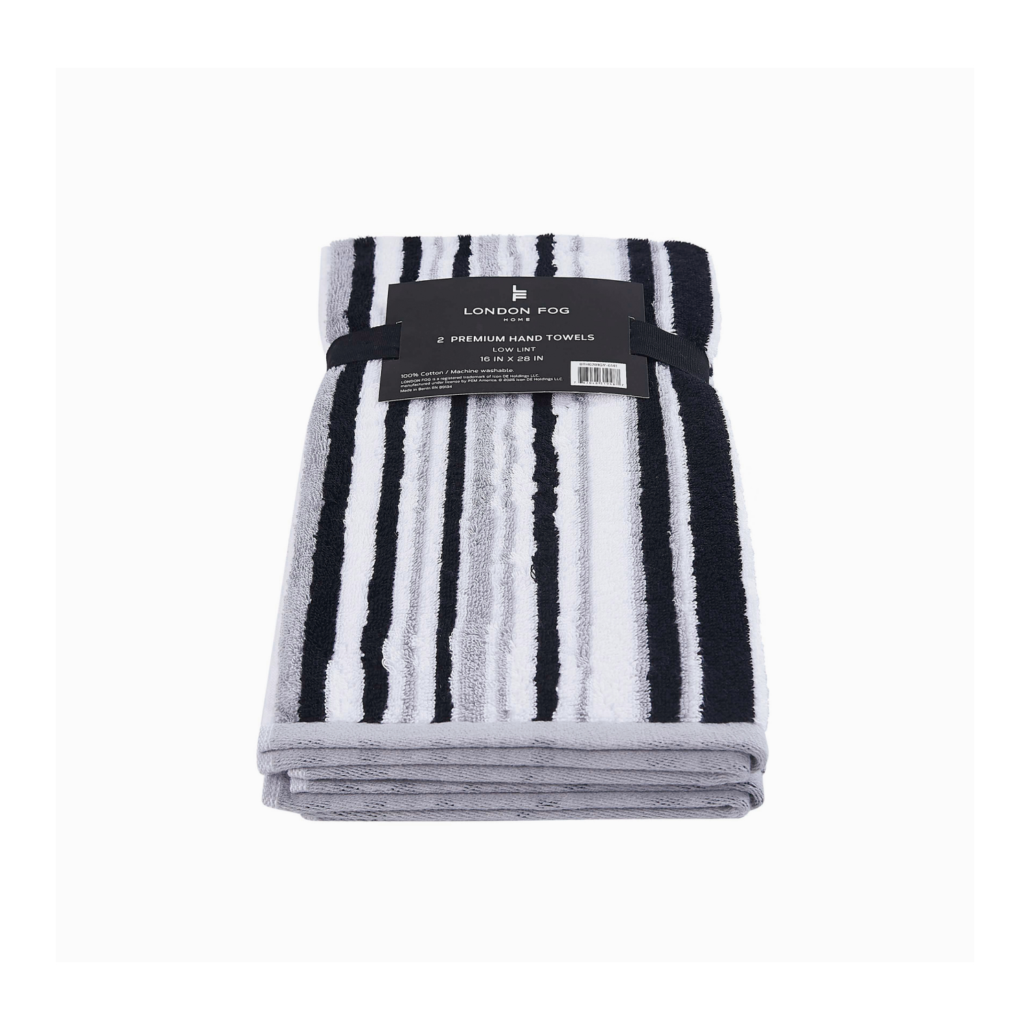 London Fog, Yarn-Dye Stripe Hand Towel, 16x28, 2pk, Gray