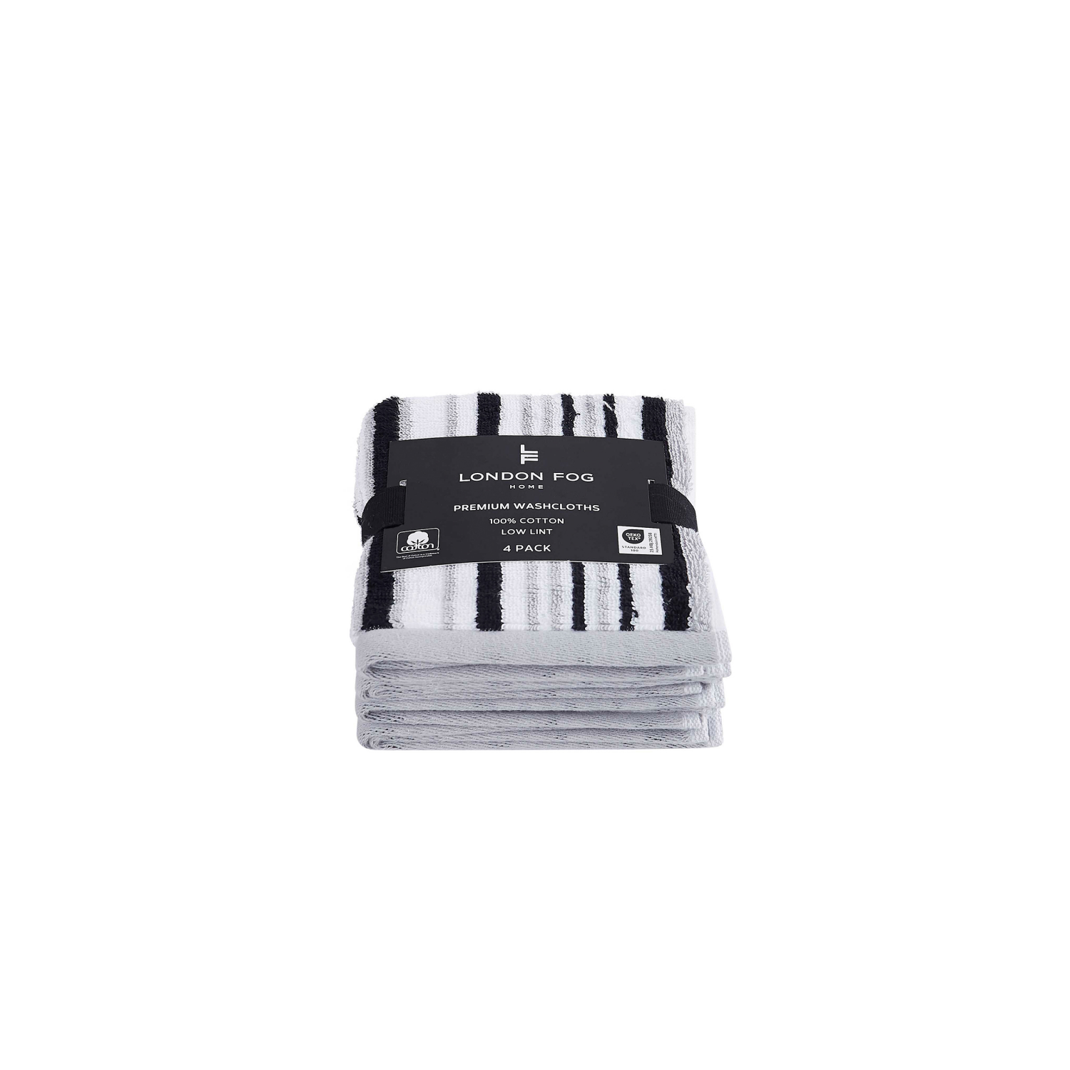 London Fog, Yarn-Dye Stripe Wash Towel, 12 X 12, 4pk, Gray