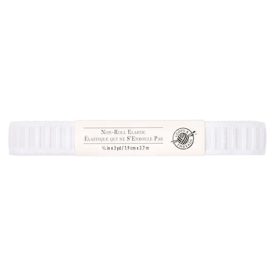 Soft and comfortable elastic ideal for sleeves, waistbands and leg bands, this elastic is curl resistant and will not narrow when stretched. 3/4" x 3yd.. 65% polyester, 35% rubber. Loops & Threads Non…