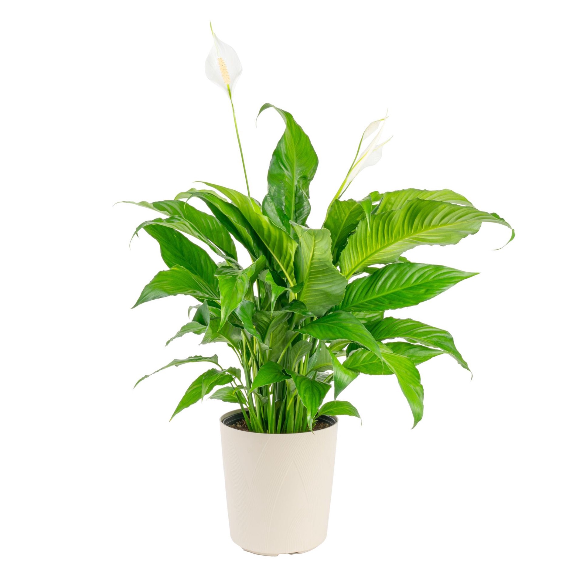 White Peace Lily House plant in 1.72 Gallon(s) Planter 1 -Pack. Tolerates medium light (2-3 hours of indirect light) per day, but loves high light (3-4 hours of indirect light) per day. Large leaves a…