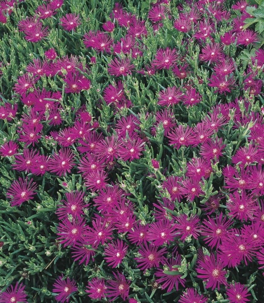 Exotic purple flowers. Excellent groundcover. Thick, fleshy green leaves. Blooms in spring.