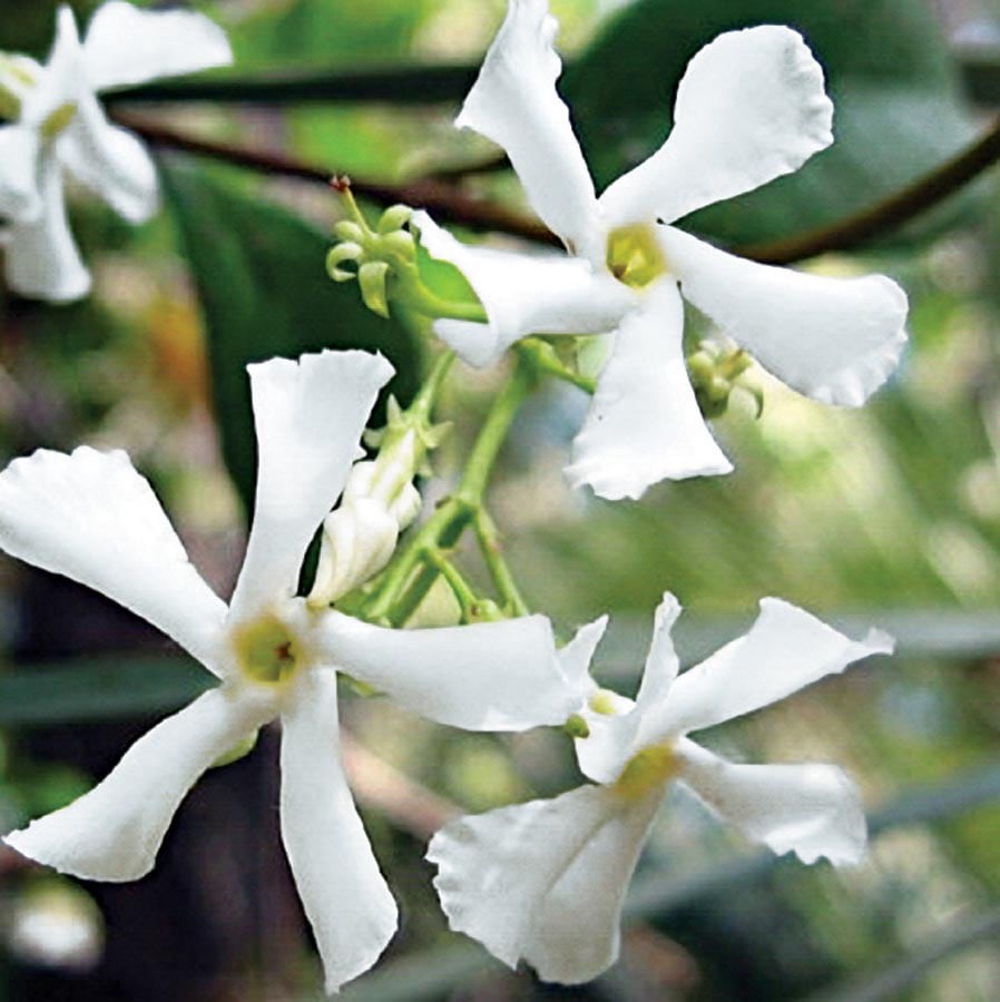 Dainty, white flower clusters. Lustrous dark green leaves. Great for containers. Blooms in summer.