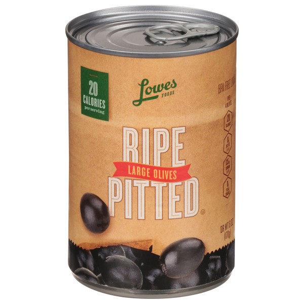 slide 1 of 1, Lowes Foods Large Olives California Ripe Pitted, 6 oz