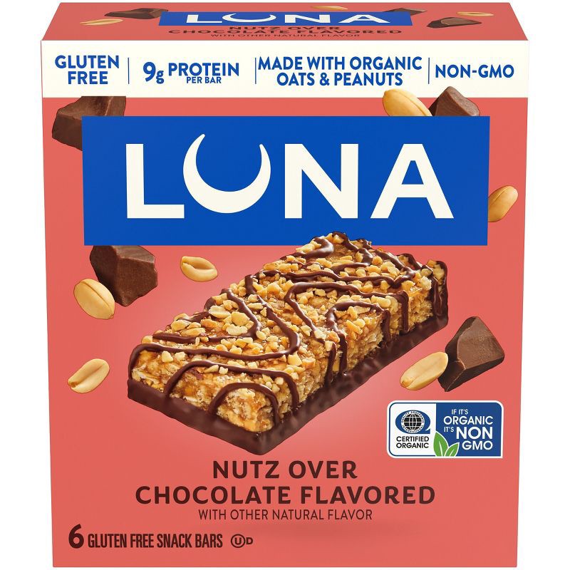 - WHAT YOU GET: One 6-pack box of LUNA Bar Nutz Over Chocolate Flavor Gluten Free Snack Bars (packaging may vary)