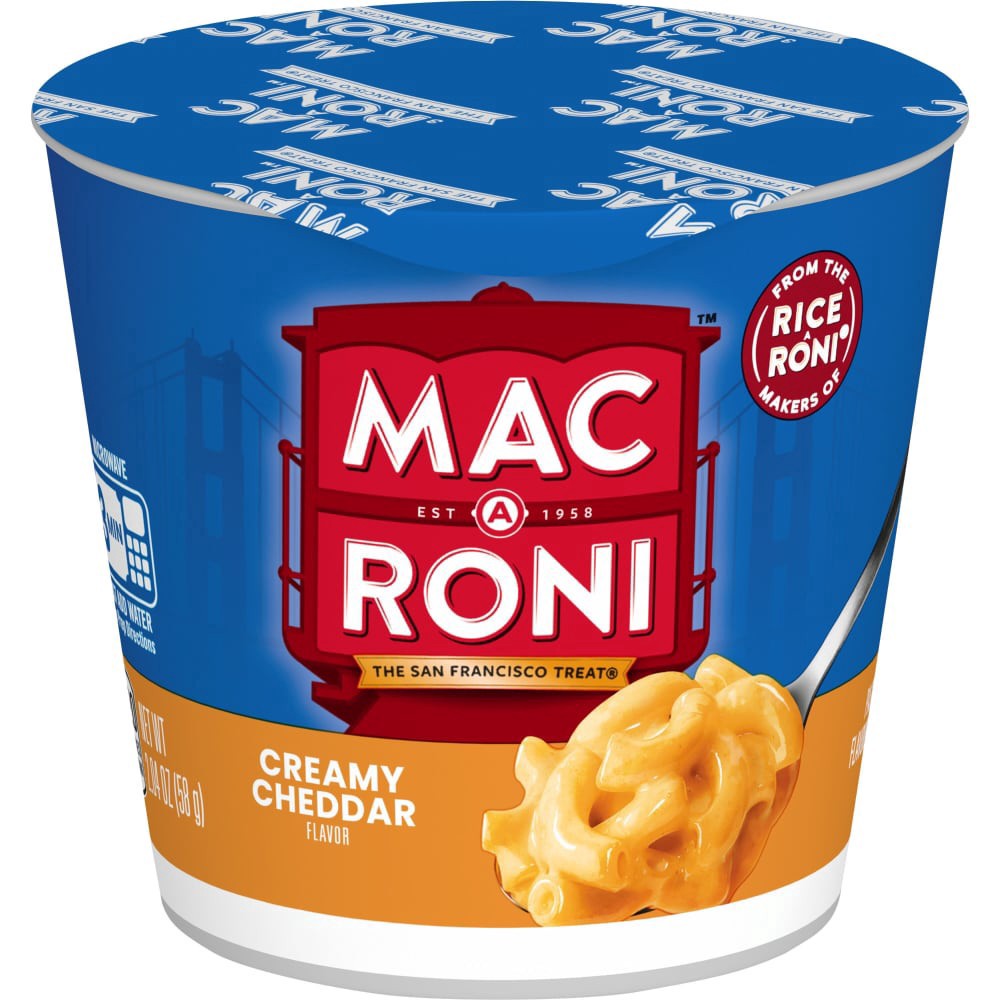 Try the creamy, cheesy Mac-A-Roni you know and love in a more convenient form. Our deliciously cheesy cups microwave in 3 minutes! Cheddar flavor mac and cheese Served in a convenient cup Enjoy at hom…