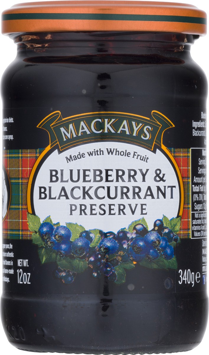 Sugar, Blueberries, Scottish Blackcurrants, Gelling Agent: Fruit Pectin, Acidity Regulator: Citric Acid.