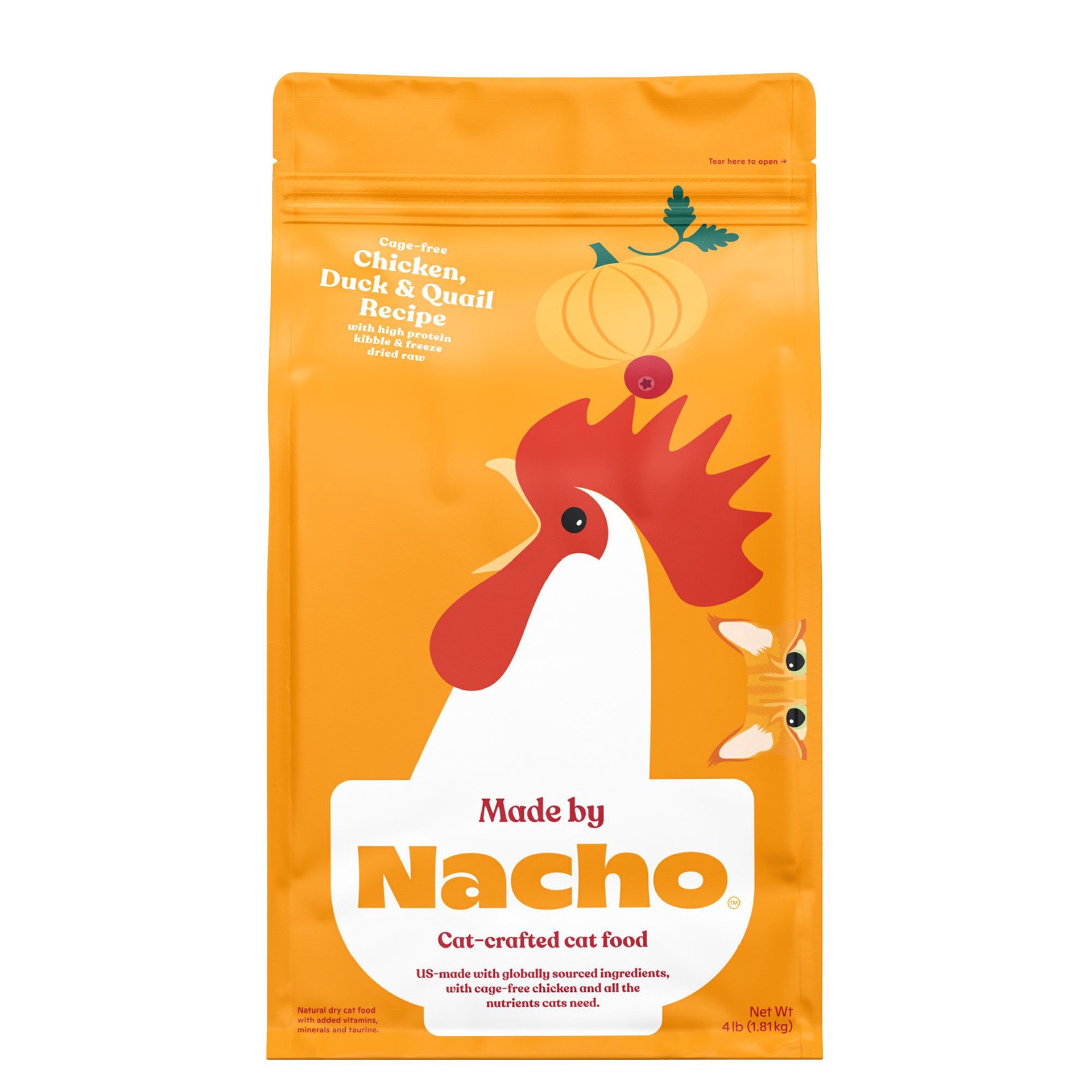 slide 1 of 1, Made By Nacho Cat Food - Natural, High Protein, Chicken, Duck & Quail, 4 lb