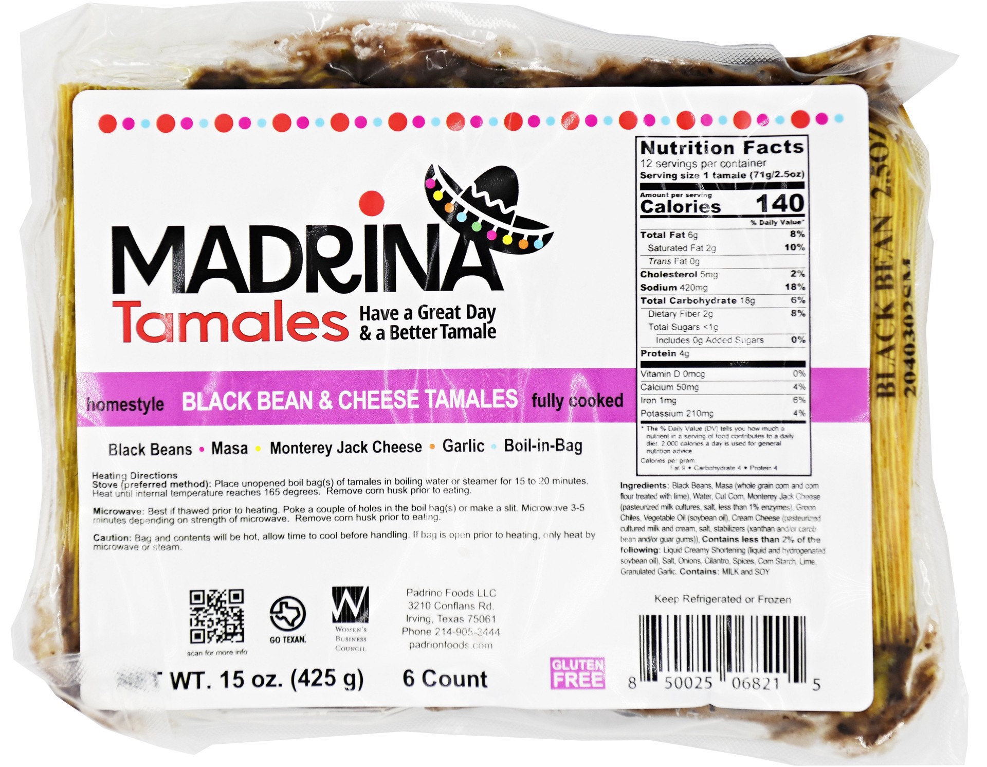 Authentic hand rolled in fresh corn husk Black Bean and Cheese Tamale made in Texas.All tamales are made from fresh ingredients.Tamales come packaged in a boil bag for ease of cooking and to maintain …