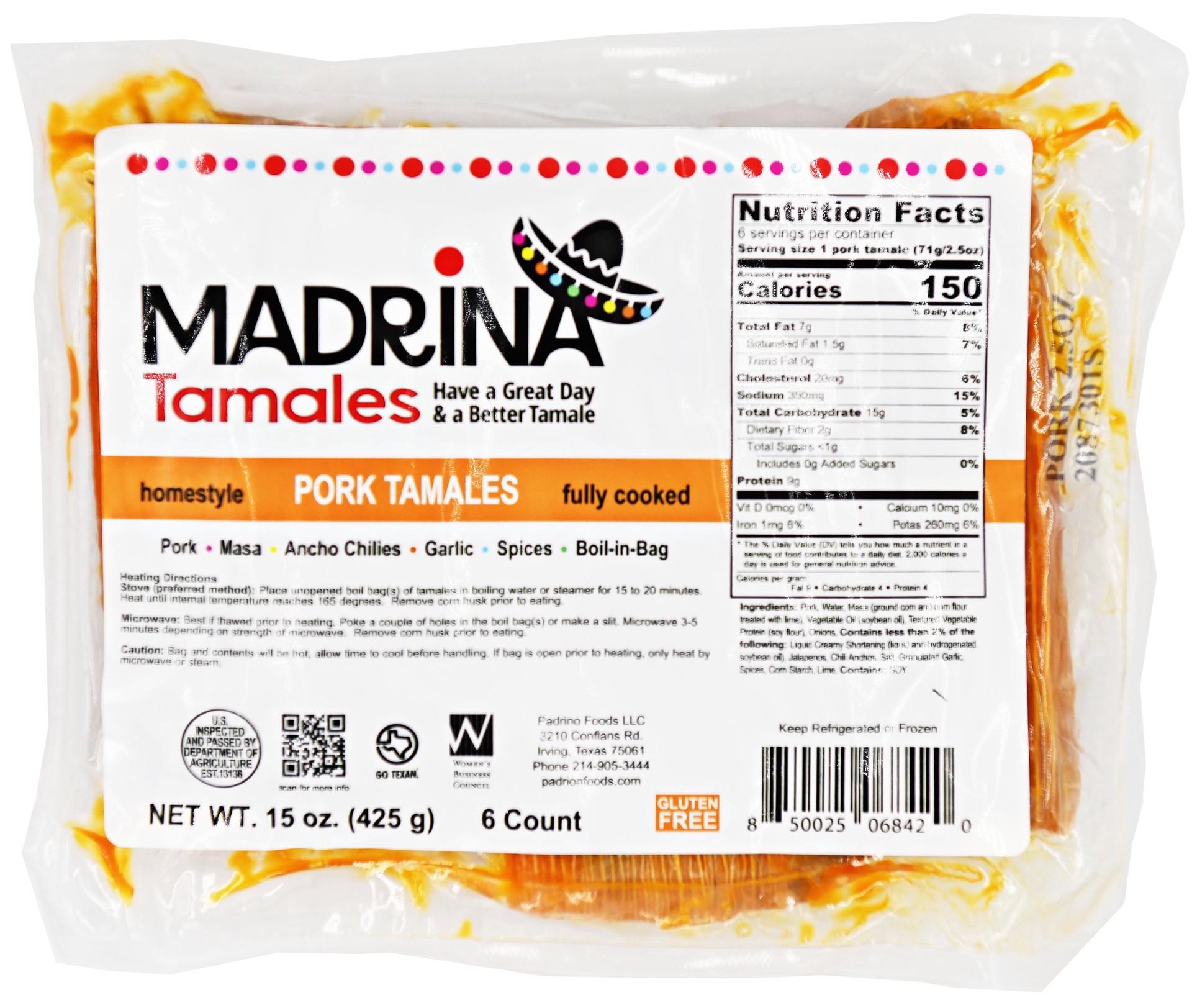 Authentic hand rolled in fresh corn husk Pork Tamale made in Texas.All tamales are made from fresh ingredients.Tamales come packaged in a boil bag for ease of cooking and to maintain the freshest flav…