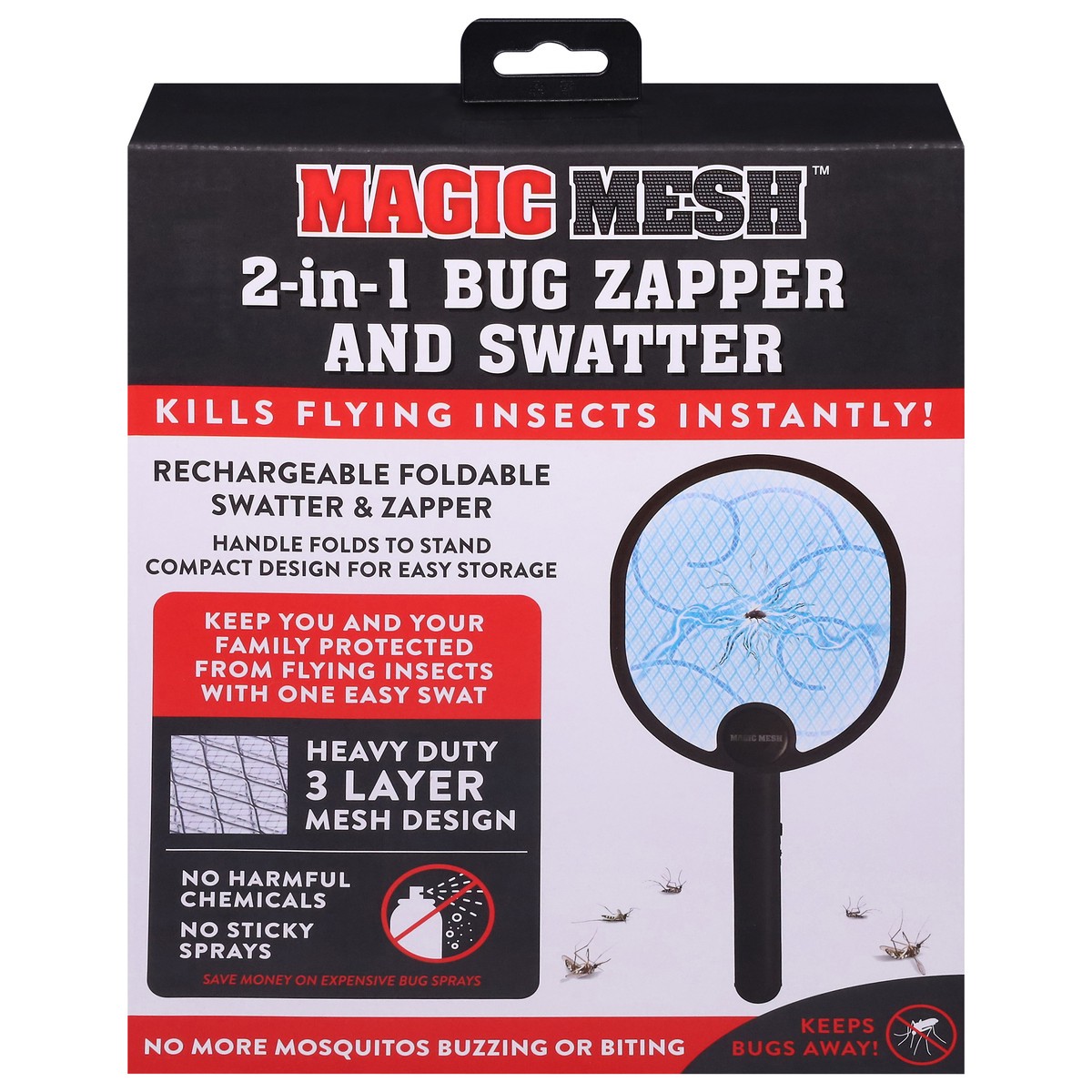 Create a comfortable, bugfree zone anywhere with the Magic Mesh 2in1 Bug Zapper and Swatter. This dual swatter and bug zapping lamp has a heavy duty 3 layer mesh surface and high voltage discharge tha…