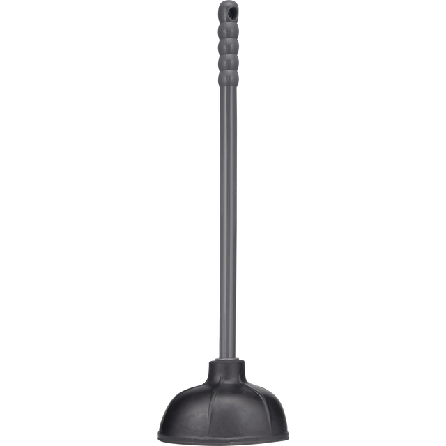 This heavy duty rubber plunger makes toilet maintenance a breeze! Easy to Clean without Bending Over or Squatting Stands for easy storage Gray and Red Colors Plastic/Rubber Handle Rubber Edge