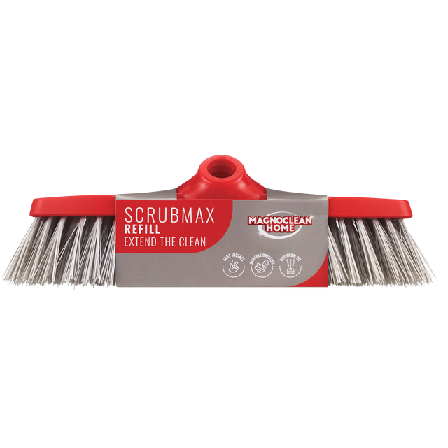 Strong Scrubber Brush Head that cleans many surfaces and has multiple home uses. Indoor and outdoor use Gray and red colors Fits MagnoClean Metal Handle (SOLD SEPARATELY)