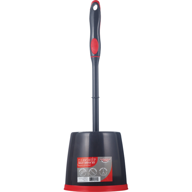 This heavy duty toilet brush is designed to make cleaning a breeze! Easy to Clean without Bending Over or Squatting Stands for easy storage Gray and Red Colors Plastic/Rubber Handle Rubber Edge