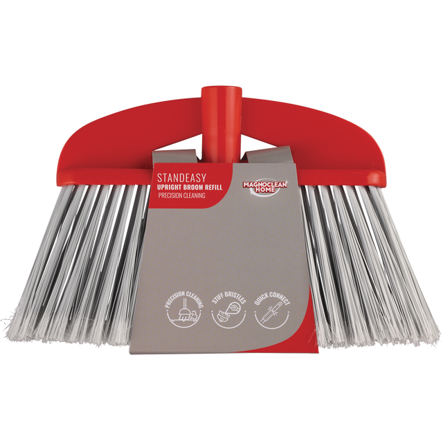 Sweep your floors with this Strong Upright Broom Brush Head. Great for multiple home uses. Indoor and outdoor use Gray and red colors Fits MagnoClean Metal Handle (SOLD SEPARATELY)