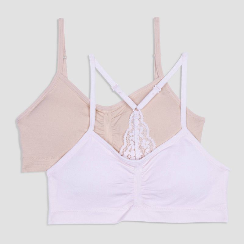 slide 1 of 3, Maidenform Girls' 2pk Seamless Lace Back Bra - Pink/Beige L, 2 ct