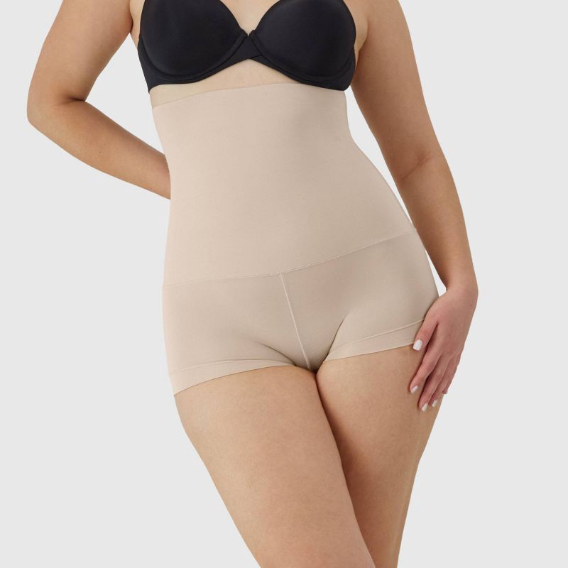 slide 3 of 6, Maidenform Women's Shapewear High Waist Tame Your Tummy Shaping Boyshorts SE0701 - Beige XL: Firm Compression Knit, 1 ct
