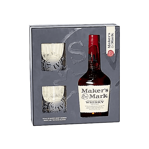 Maker's Mark, Meticulously crafted bourbon - Gift set with 2 glasses. This item is available for Gift Wrap.