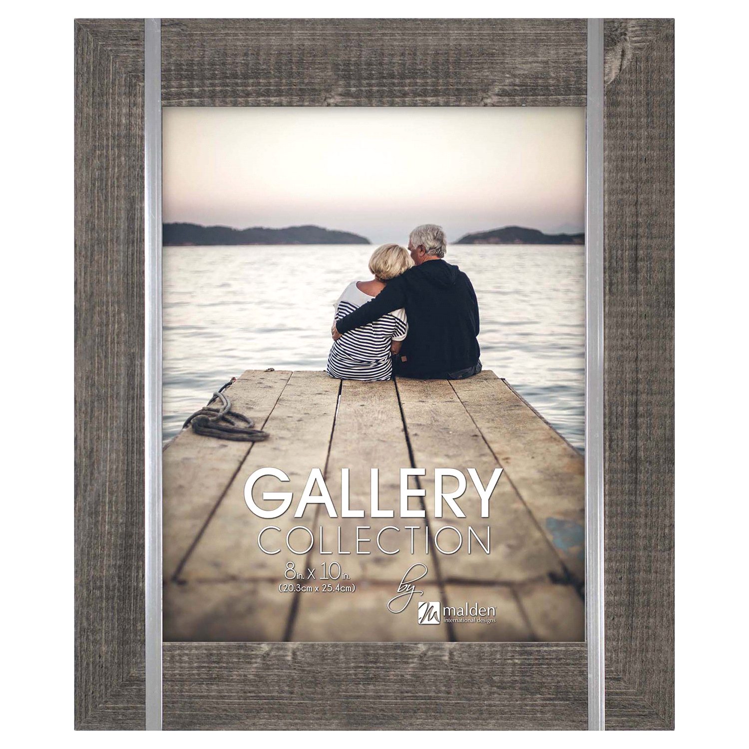 Malden 8x10 rustic frame in color gray. The frame is made of MDF wood with silver metal accents. The frame holds a 8x10 photo. Durable glass front to protect your photo. Easel back for horizontal or v…