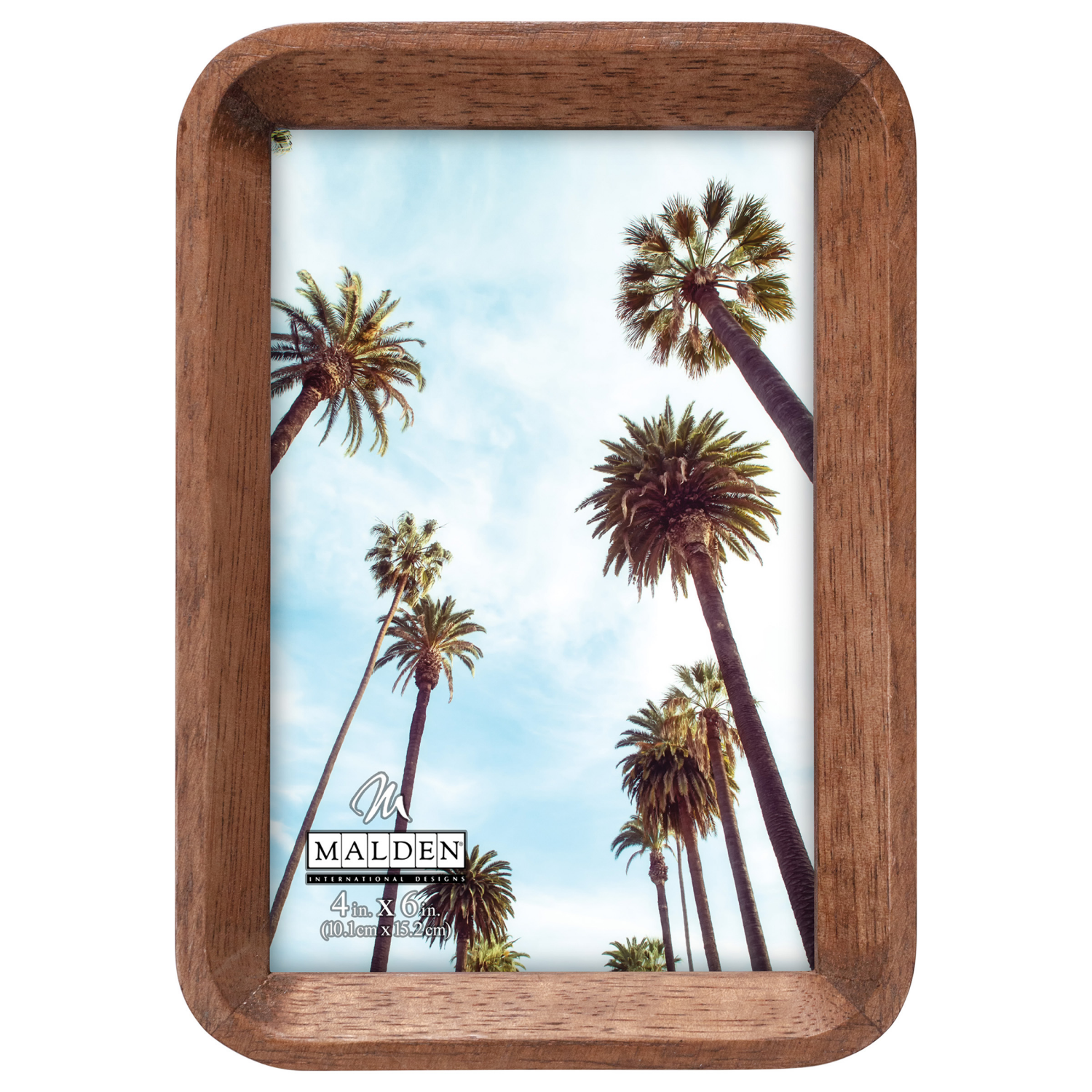 Malden 4x6 Curved Wood frame in walnut color. The frame is made of MDF wood curved moulding with a wood grain finish. The frame holds a 4x6 photo within a 3.5x5.5 opening. The durable glass front will…