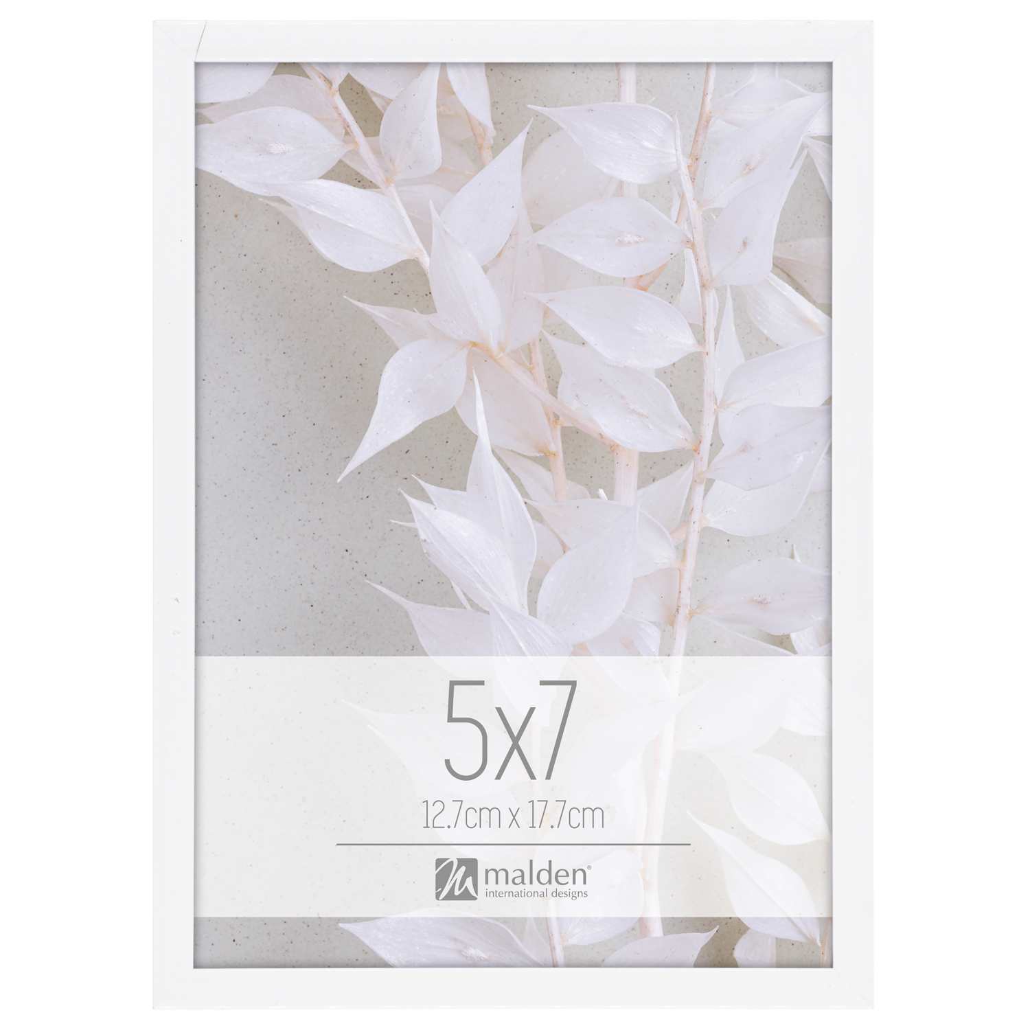 Malden 5"x7" photo frame in white color. This photo frame is made of PS and has squared edges. The frame holds an 5"x7" photo in a 4.5"x6.5" opening. It can be displayed either horizontally or vertica…