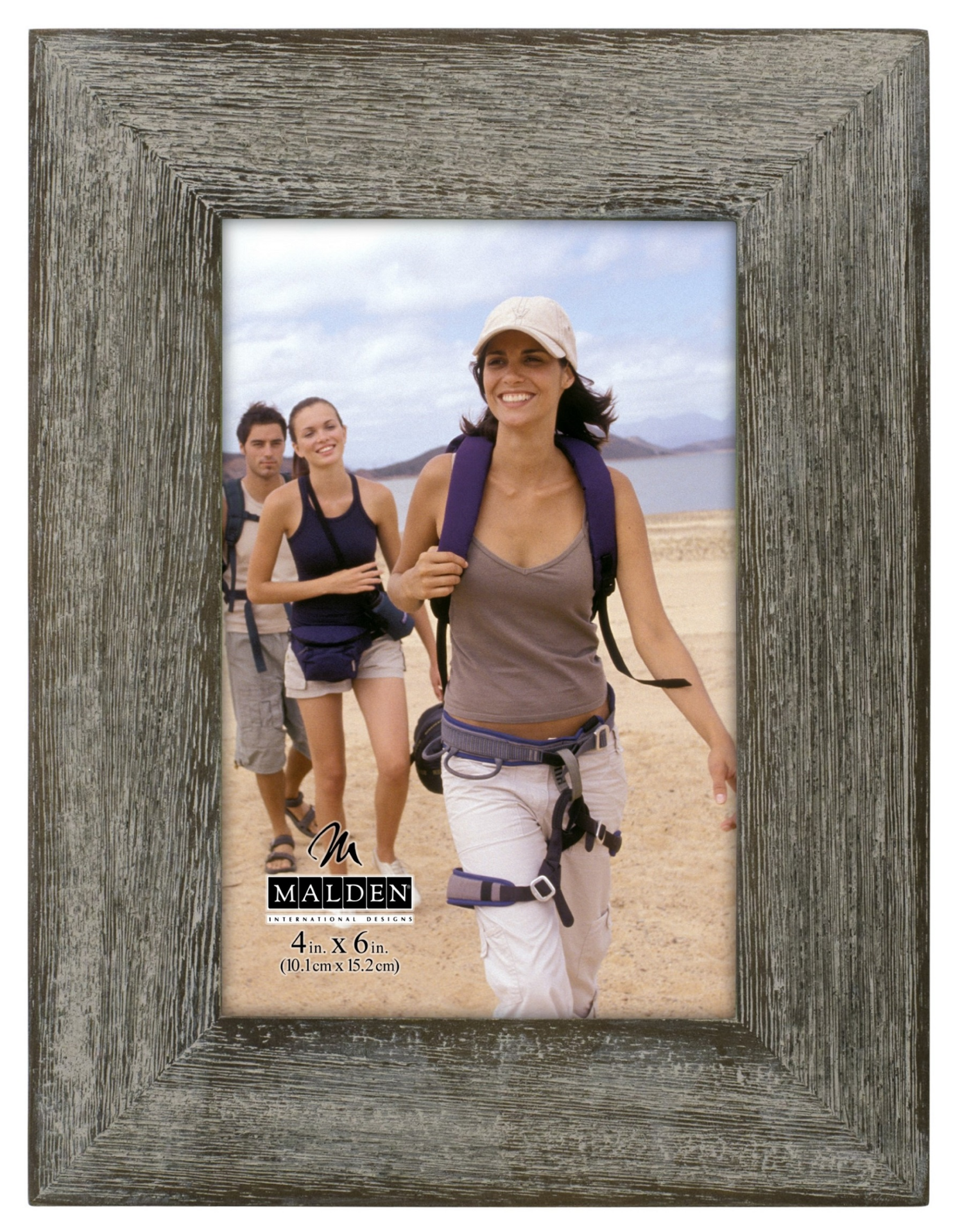 Malden 4x6 Distressed picture frame gray color. The frame is made of MDF wood with a wood grain finish and beaded inner border. The frame holds a 4x6 photo. A durable glass front will protect and show…