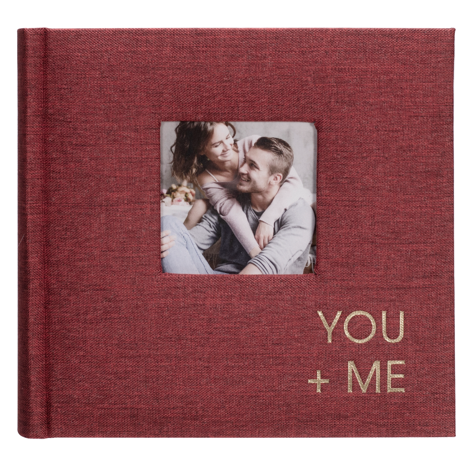 Malden 1 Up 4x6 You Me Fabric Photo Album With Memo Writing Areas Hard Cover cranberry red color. Create written captions next to your photos within the memo writing space included on every page. Thi…