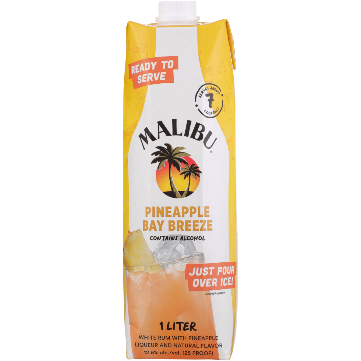 Canada - 12.5% - Classic Malibu White Rum with pineapple liqueur and all natural flavorings brings the classic Pineapple Bay breeze cocktail in a convenient ready to serve format. Just pour over ice a…
