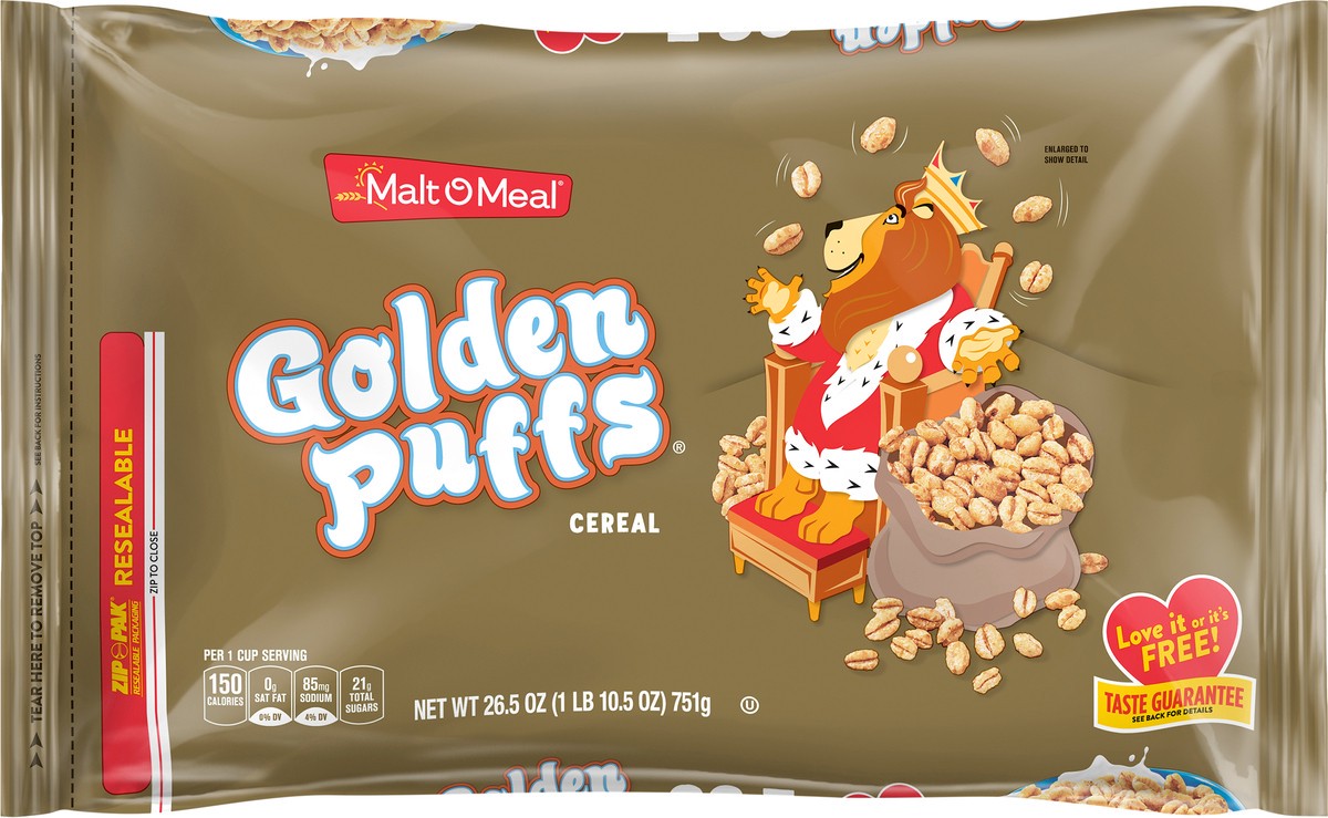 Malt O Meal Golden Puffs Breakfast Cereal combines crispy golden wheat puffs with sweet caramelized flavor for an irresistible start to your morning breakfast cereal. These crisped golden cereal puffs…