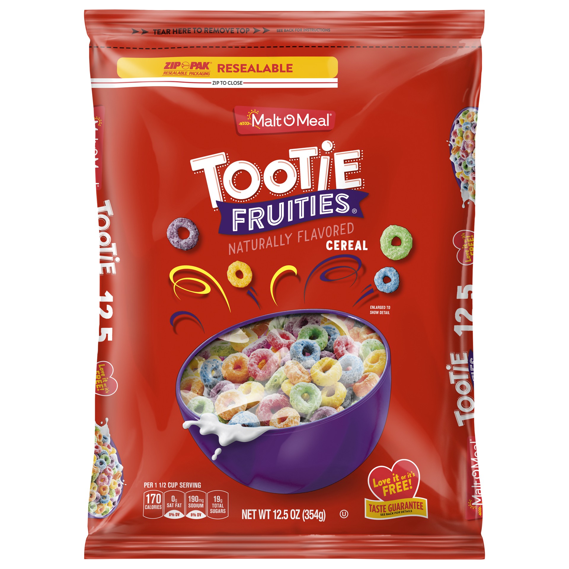 Malt O Meal Tootie Fruities Cereal is bursting with bright colorful cereal pieces that add a dash of fun to your morning breakfast cereal. Malt O Meal Tootie Fruity cereal is filled with bite sized pi…