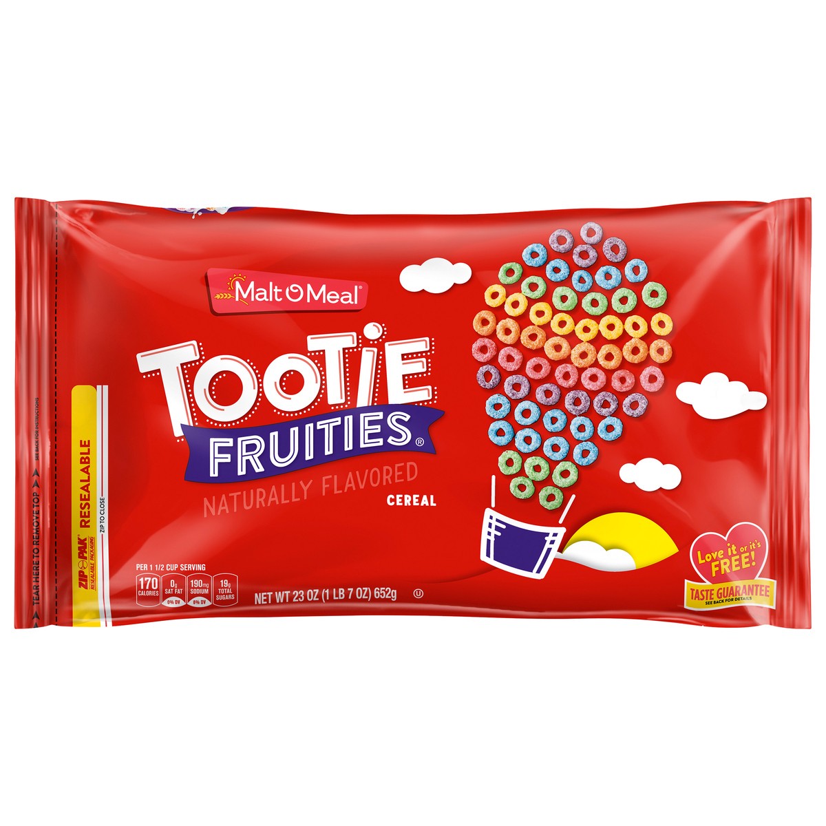 Malt O Meal Tootie Fruities Cereal is bursting with bright colorful cereal pieces that add a dash of fun to your morning breakfast cereal. Malt O Meal Tootie Fruity cereal is filled with bite sized pi…