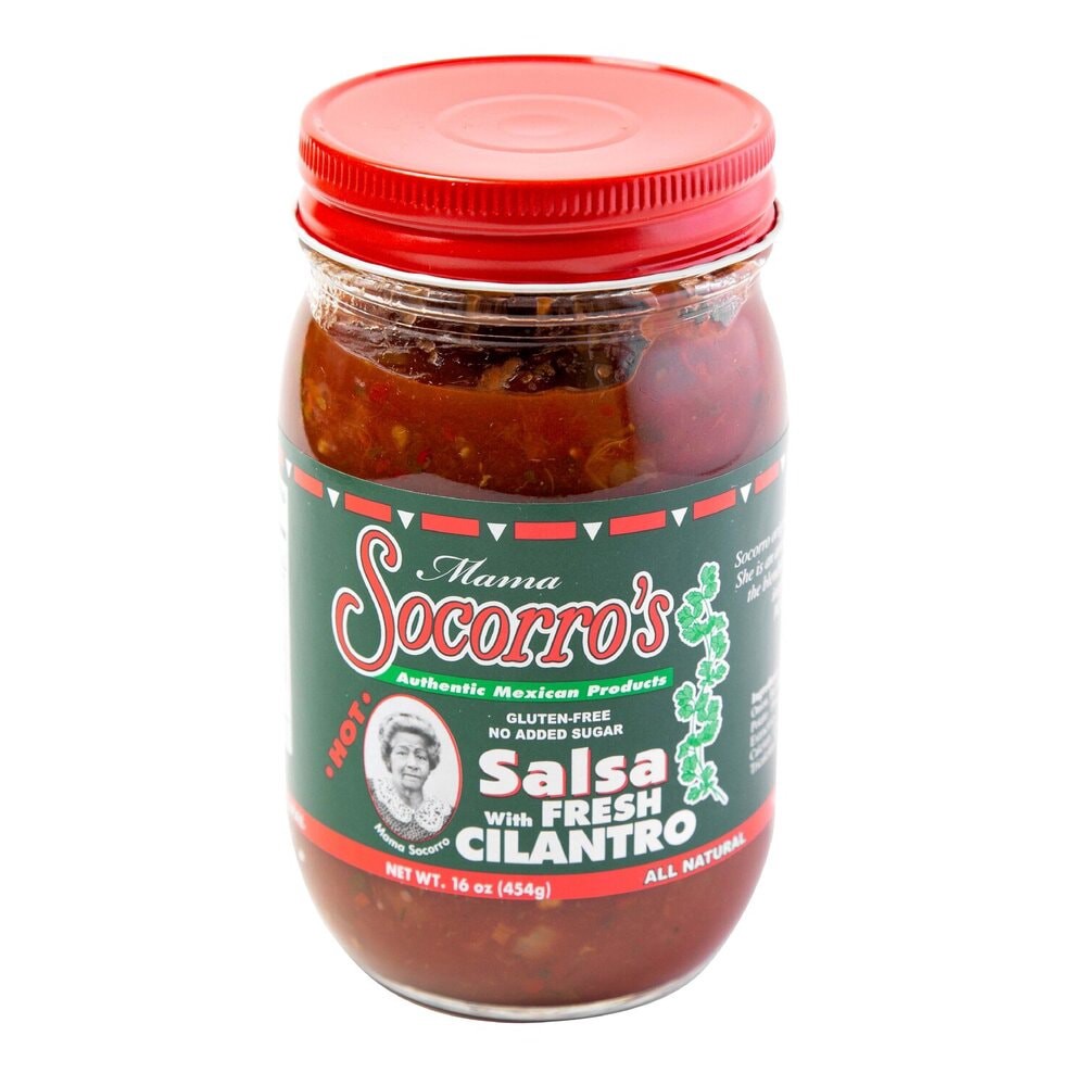slide 1 of 1, Mama Socorro's Hot Salsa With Fresh Cilantro Gluten Free No Sugar Added, 16 oz