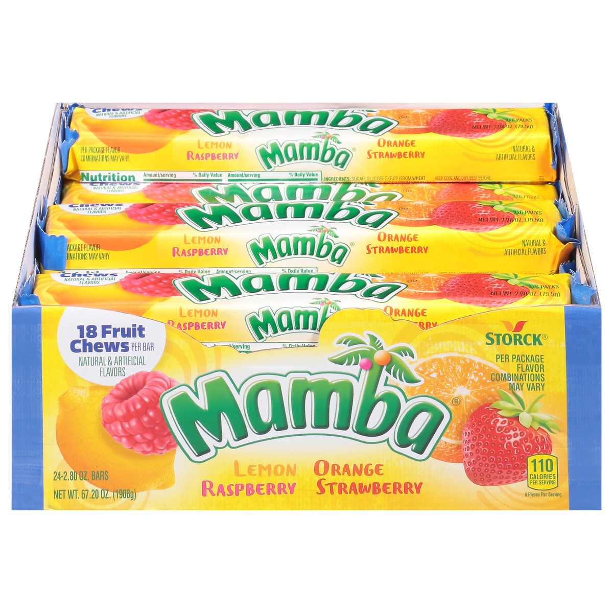 18 fruit chews per bar. Per package flavor combination may vary. Each 2.80 oz bar contains 3 individually-wrapped 6 piece packs. Part of your world.