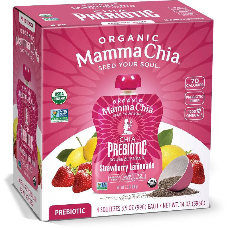 Mamma Chia Organic Strawberry Lemonade Prebiotic Squeeze Snack 4 - 3.5 oz Each