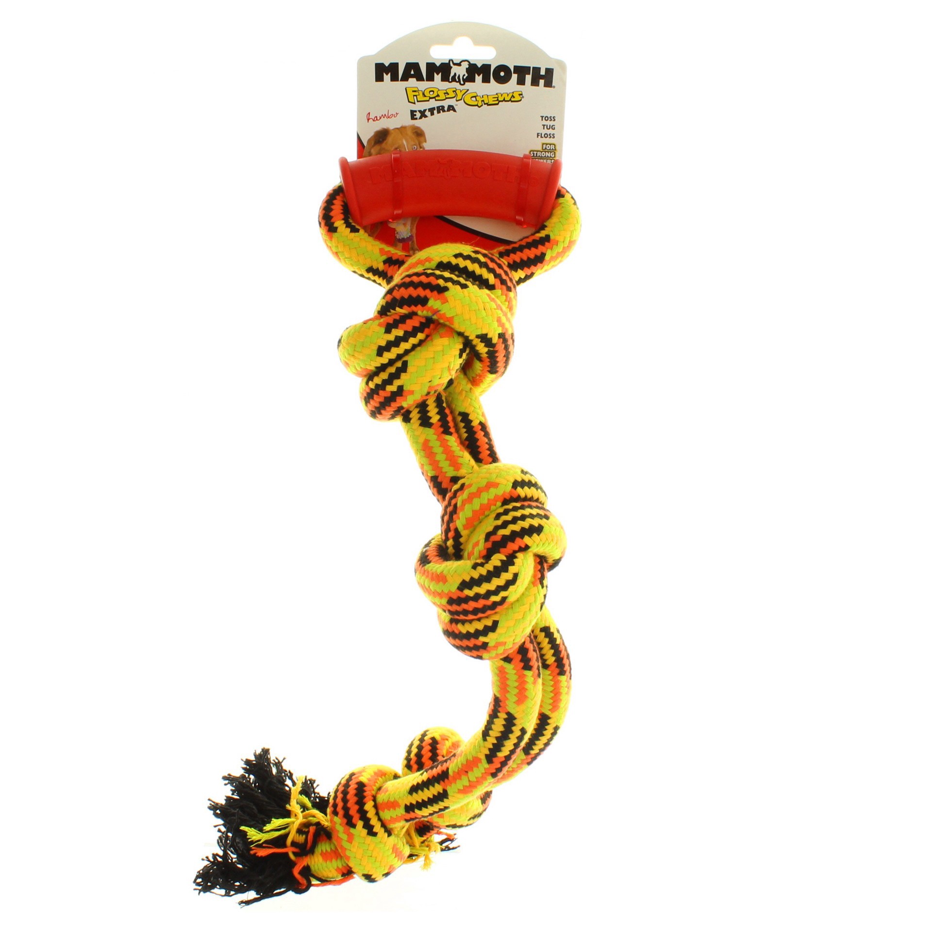 Mammoth Flossy Chews EXTRA rope toys are made from premium materials in fun shapes and colors for dogs of all sizes. EXTRA toys are tougher than our standard rope chews and made more durable for stron…