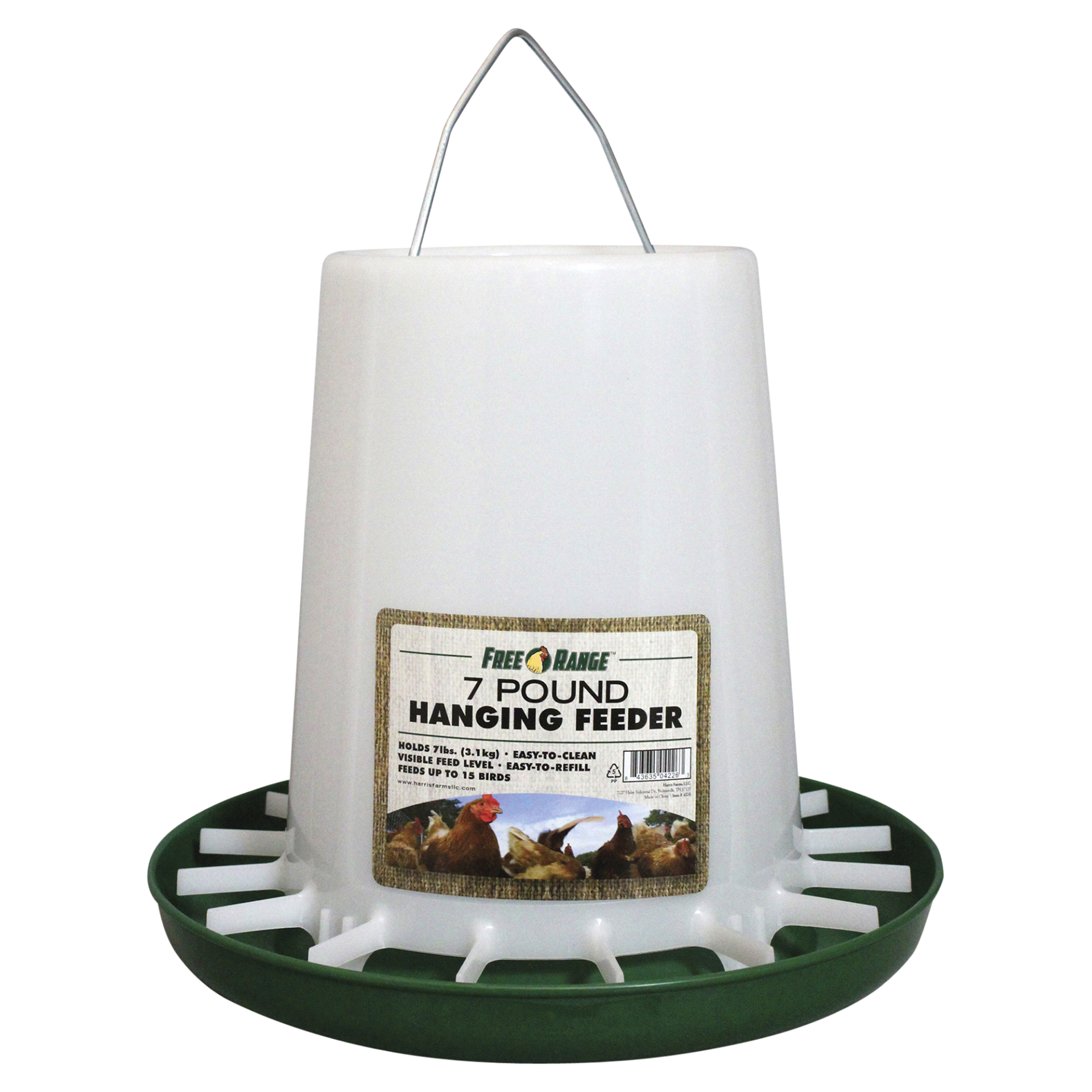 The Manna Pro Free Range open-top 7-lb capacity feeder is designed for fast filling, easy cleaning and minimal waste of feed thanks to the no-scratch-out twist-lock base. Keep your chickens fed and co…