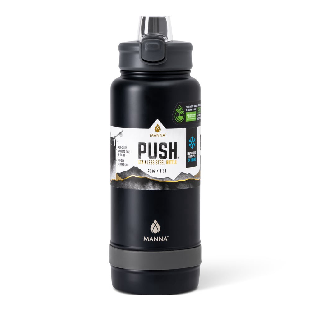 Manna™ Push™ Staineless Steel Water Bottle - Black